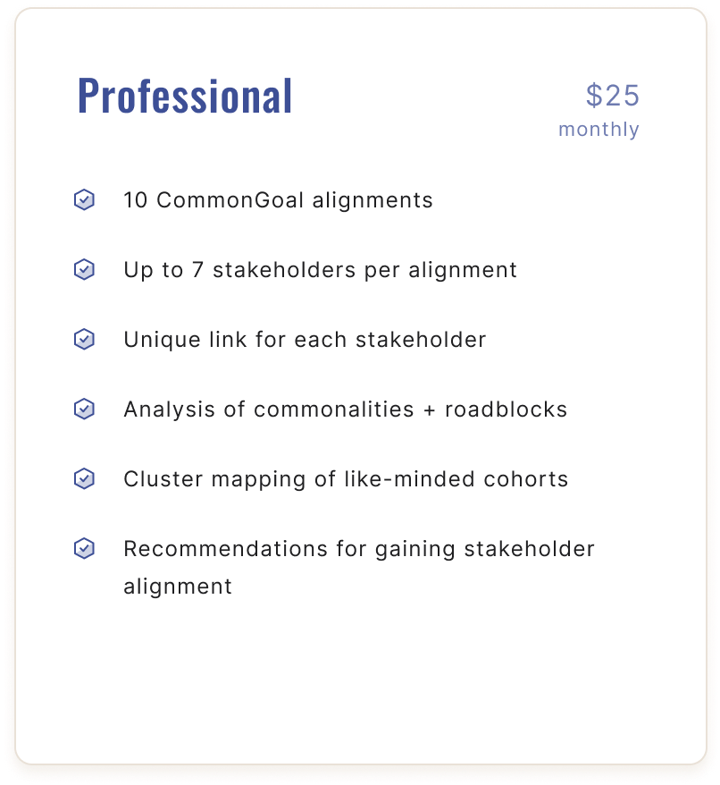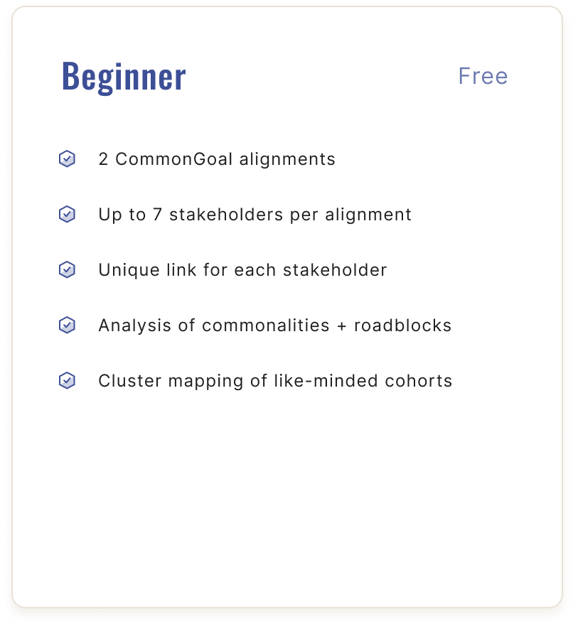 AI analysis of unique stakeholder perspective makes for superior outcomes, Where misalignment can lead to conflicts and delays, CommonGoal helps you facilitate understanding. We make it easy to gather key stakeholder perspectives without ruffling feathers